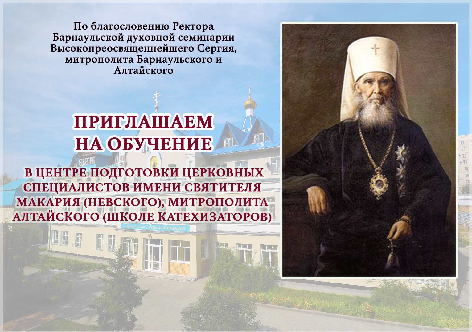 По благословению Ректора Барнаульской духовной семинарии Высокопреосвященнейшего Сергия, митрополита Барнаульского и Алтайского Центр подготовки церковных специалистов имени святителя Макария (Невского), митрополита Алтайского проводит набор на 2023/2024 учебный год.