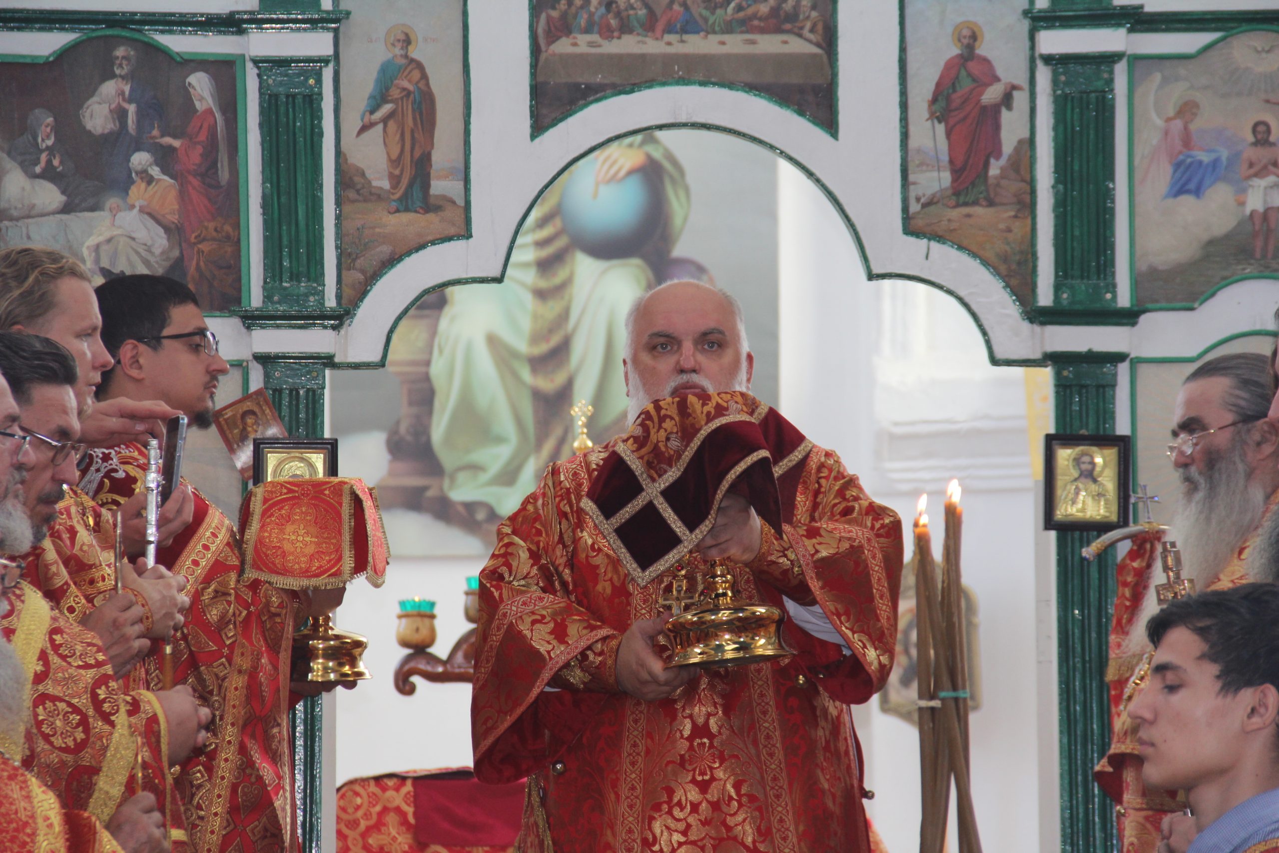 Впрочем, в этот день Богоявленский храм был наполнен не только духовенством, но и мирянами. Верующие пришли на службу, которую проводил епископ Славгородский и Каменский Антоний. Этому предшествовала торжественная встреча гостей города, а также святых мощей Петра и Февронии Муромских, Георгия Победоносца.