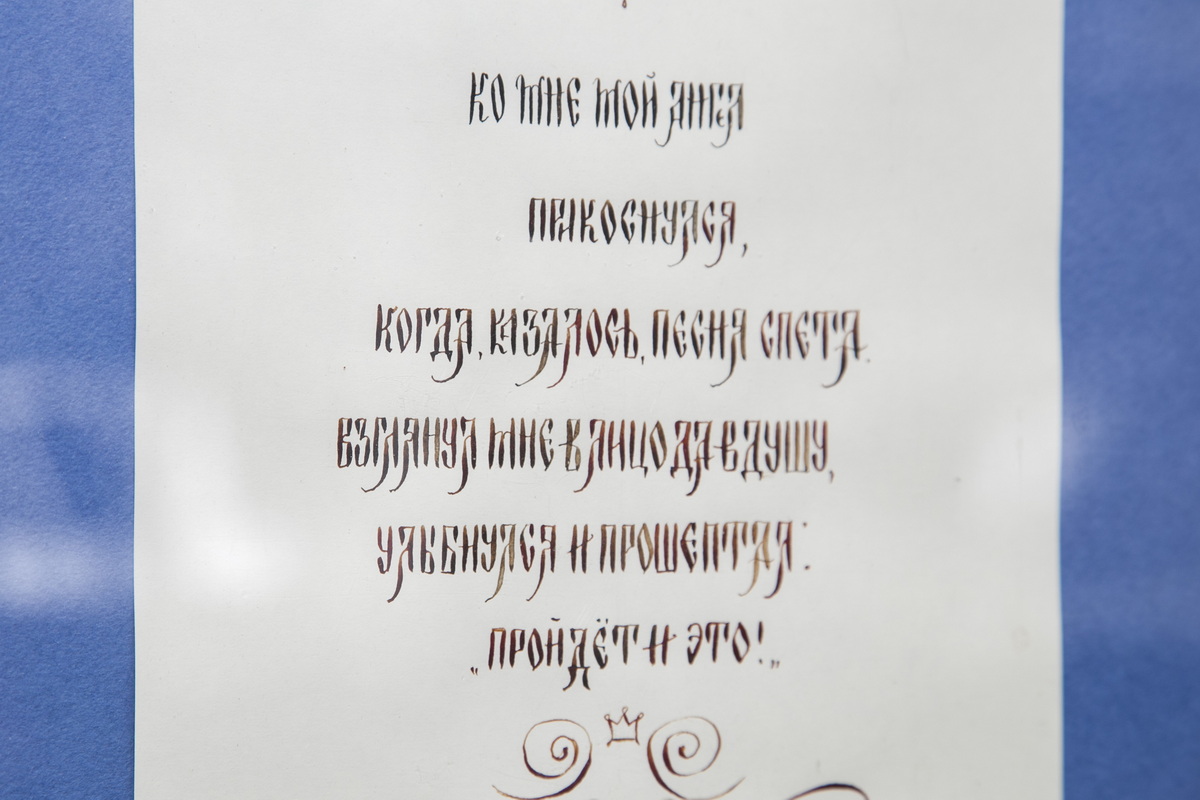 Второй частью программы праздника стало открытие выставки «Золотое перо русской каллиграфии» руководителя первой «Школы каллиграфии» г. Барнаула Татьяны Сергеевны Голубевой.