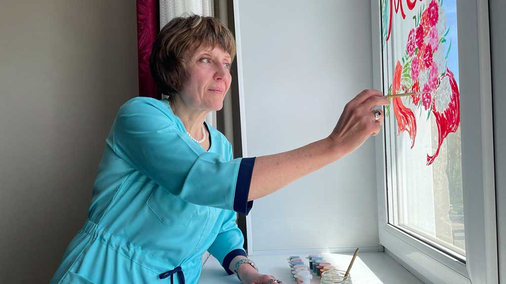 Алтайский врач-онколог создает рисунки на окнах отделения паллиативной помощи
