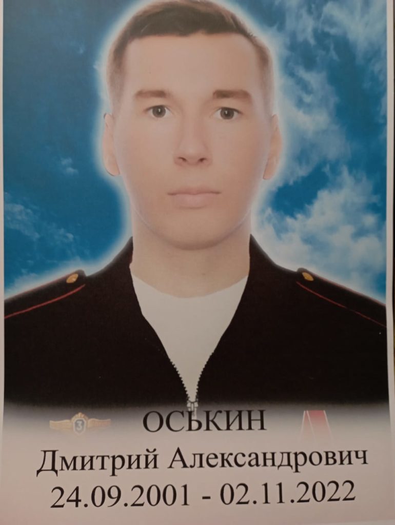 Дмитрий Александрович Оськин погиб 02.11.2022 года, при выполнении служебного долга в н.п. Павловка Донецкой Народной республики, в ходе специальной военной операции .