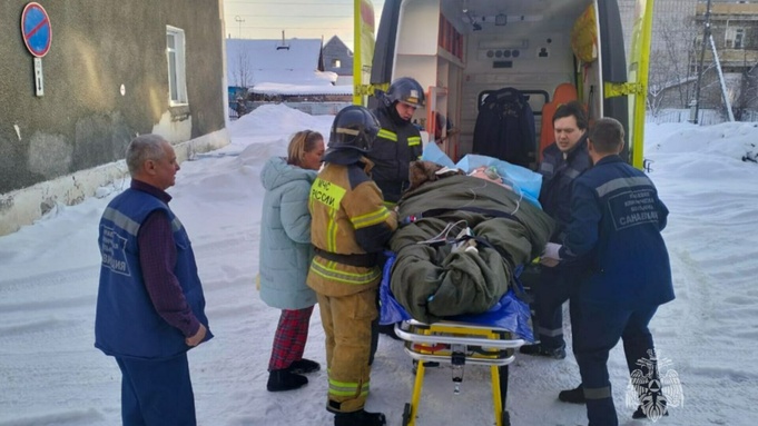 Спасатели успешно перенесли пациента в автомобиль скорой помощи.