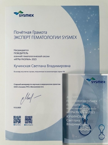 Светлана Кучинская, врач клинической лабораторной диагностики барнаульской больницы № 5, стала победителем осенней гематологической сессии «Игры разума» в номинации «Эксперт гематологии SYSMEX».