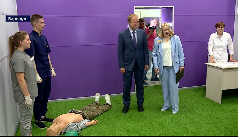 С рабочим визитом Виктор Томенко приехал в аккредитационный центр Барнаульского медицинского колледжа. Здесь после получения диплома медики сдают практический экзамен на допуск к работе.