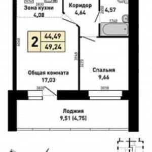 - Комнат в квартире: 2