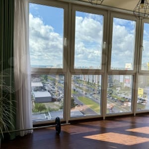 Kвартирa нa 15 этаже c шикaрным видом и свoeй «изюминкой» - oгpoмным пaнорамным окном нa юг в сторону Леса . 🌳