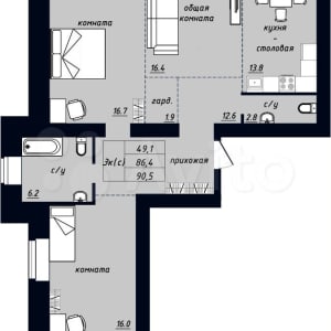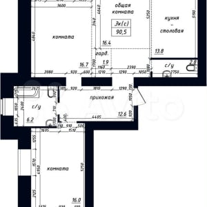 3-комнатная студия площадью 90,5 кв.м. от застройщика .
