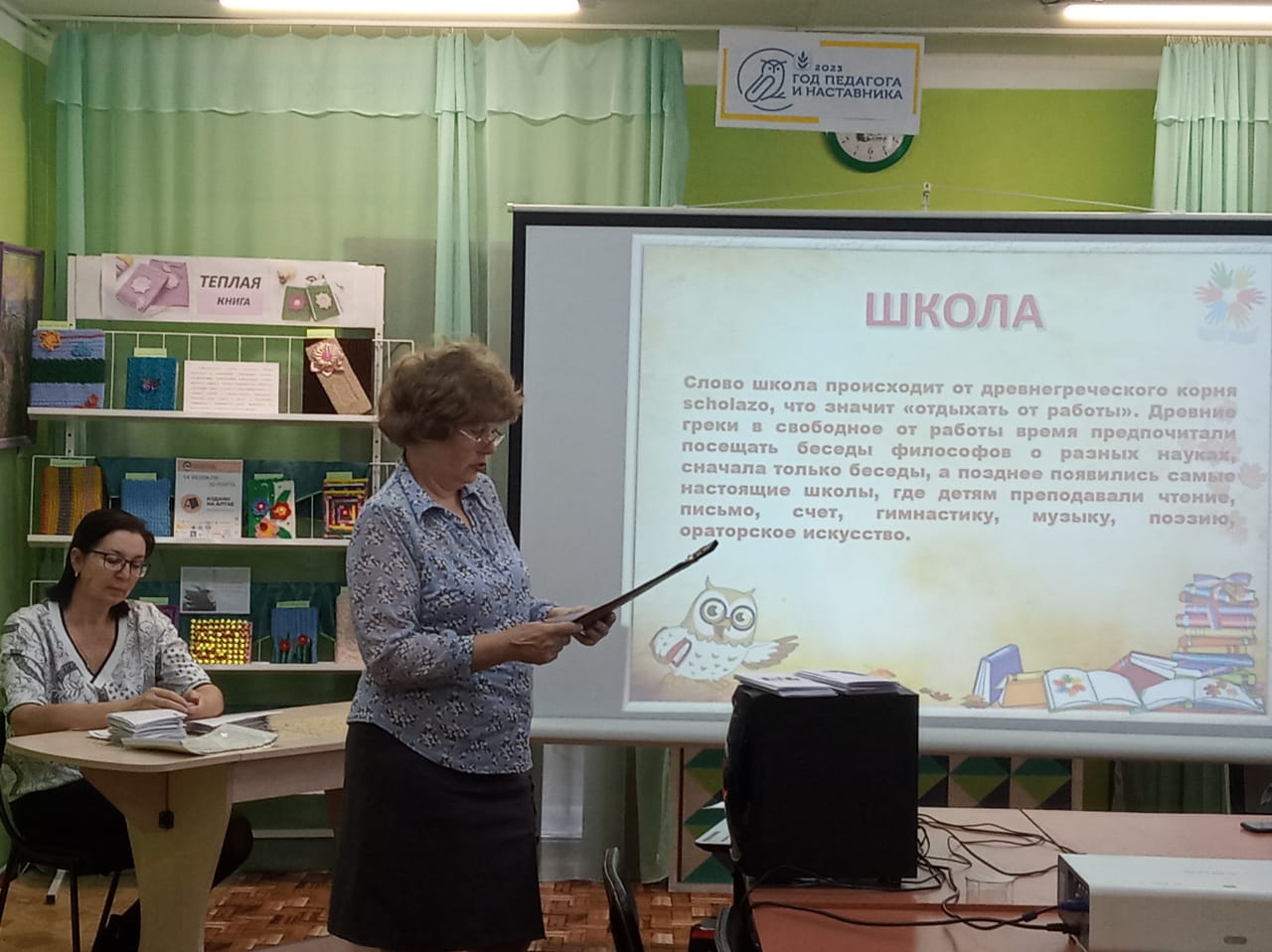 2023 год объявлен президентом России годом педагога и наставника. Об истории образования, о появлении профессии учителя, педагога- наставника, о выдающихся русских педагогах, их вкладе в воспитание и обучение детей рассказала ребятам заведующий отделом обслуживания Лёдова С.А..Затем слово предоставили руководителю Центра занятости населения Ельцовского района Галине Александровне Кречетовой, она рассказала ребятам, где и как можно получить профессию учителя, какими качествами должен обладать педагог. Это в первую очередь: зрелость, гражданская и нравственная, сознательное отношение к своей профессии, быть инициатором и проводником норм и идеалов социума. Учитель должен любить детей и гуманно относится к ним. Состоялся с детьми разговор и о личностных качествах, присущих успешным педагогам: наблюдательности, выдержке, самообладании, аккуратности, чувстве такта, твердости, находчивости. Галина Александровна рассказывала о профессии учителя, так как сама получила педагогическое образование. В заключение было проведено тестирование: "Ваш темперамент"