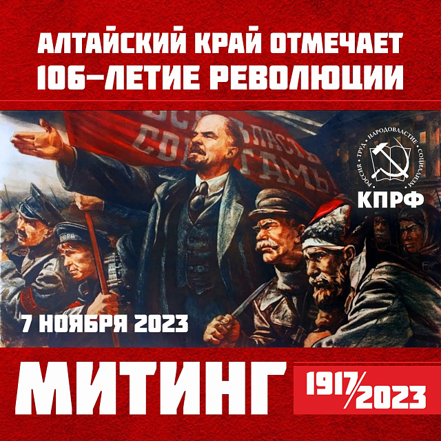 7 ноября коммунисты и сторонники КПРФ в Алтайском крае проводят торжественные мероприятия, посвященные 106-й годовщине Великой Октябрьской социалистической революции.