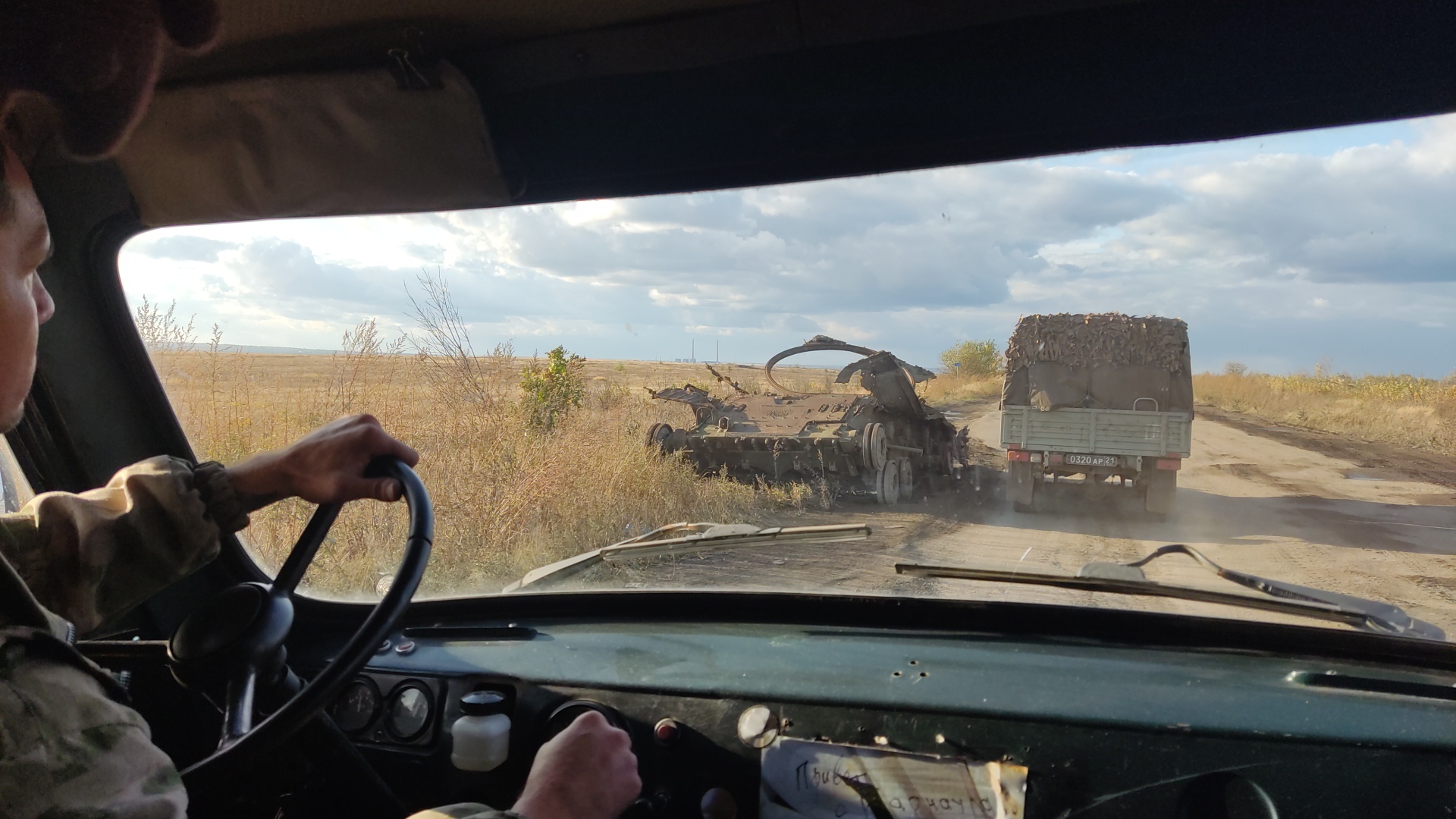 Навстречу летят БТРы и танки. На обочинах они же — только искореженные и пожженные. Почему-то даже легковушки здесь тихо не ездят, все летят, несмотря на воронки от взрывов. То ли по привычке, что задерживаться на этом направлении не стоит…