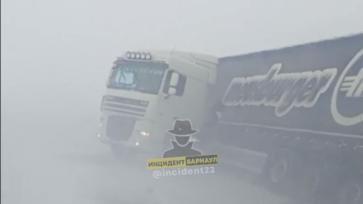 На трассах Алтайского края продолжает наблюдаться плохая видимость. Грузовые машины перестали пускать. Но одна из них как-то оказалась на трассе